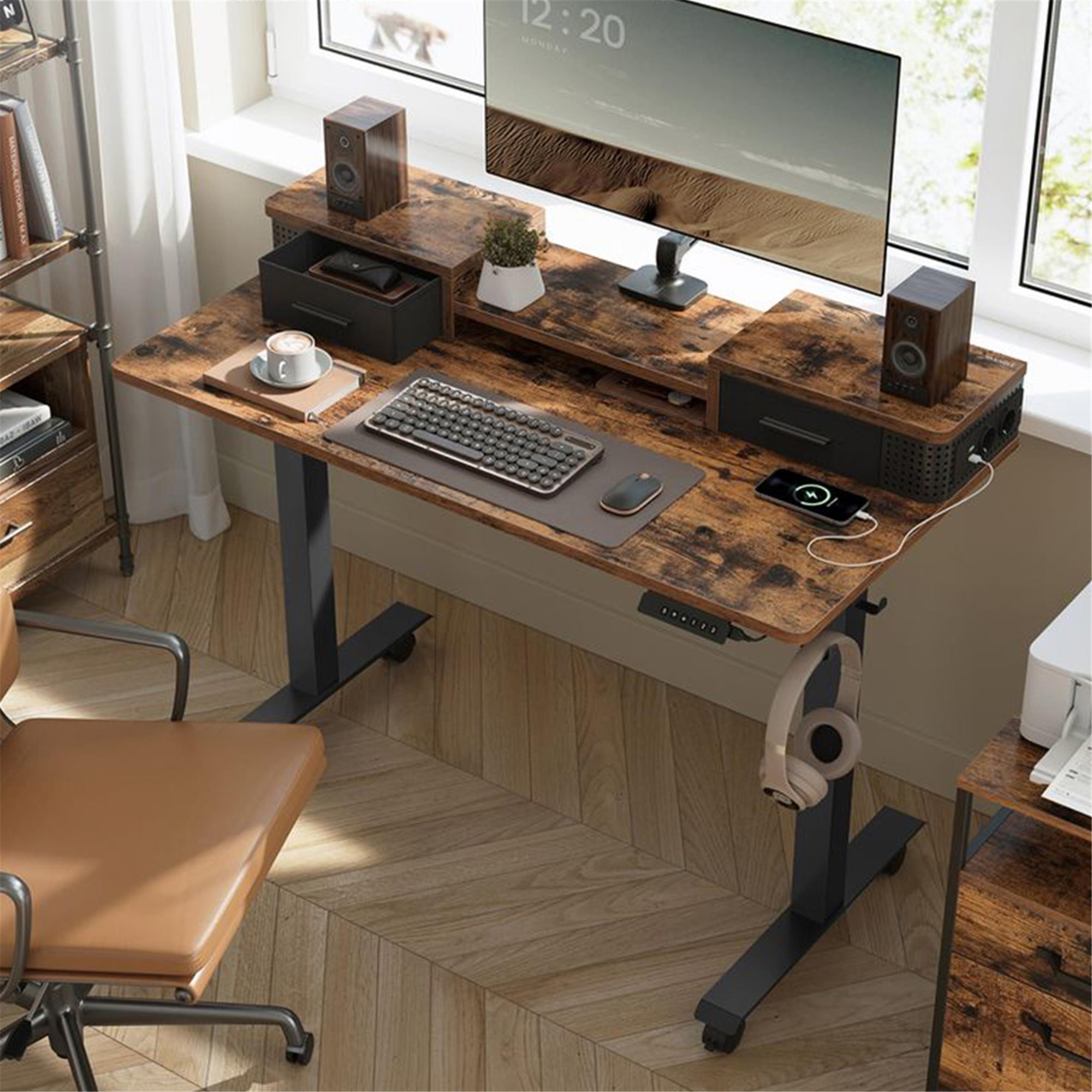 • Funktionelt, originalt og moderne design• Højdejusterbart i 3 positioner• Med skuffer, stikkontakter og USB-porte• Meget robust og stabil struktur• Fremstillet af kvalitetsmaterialer