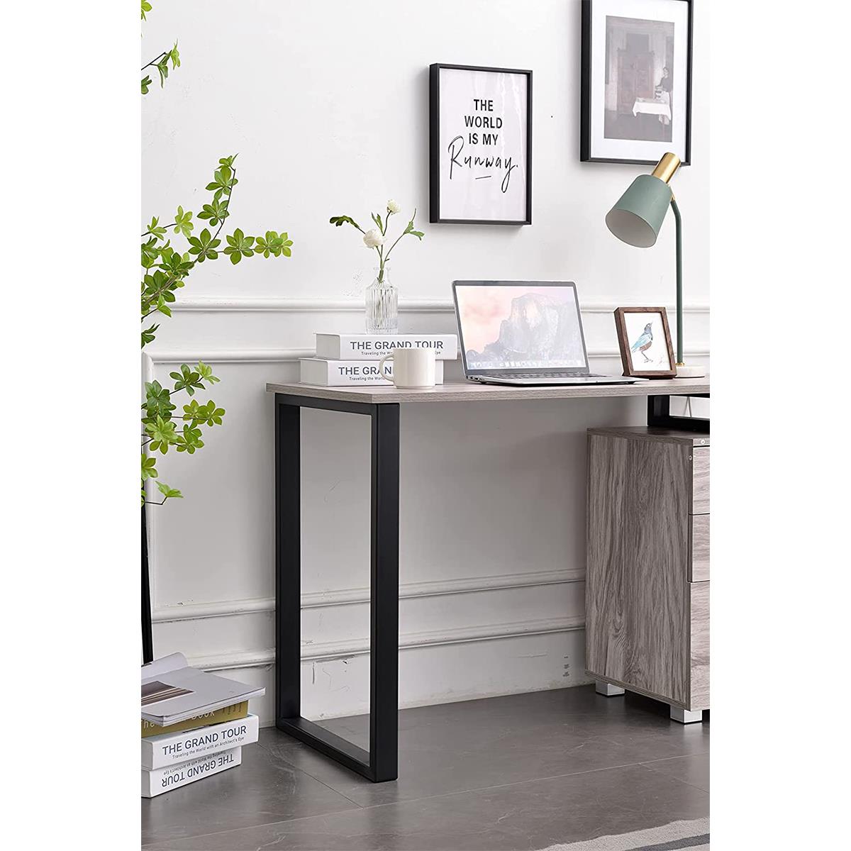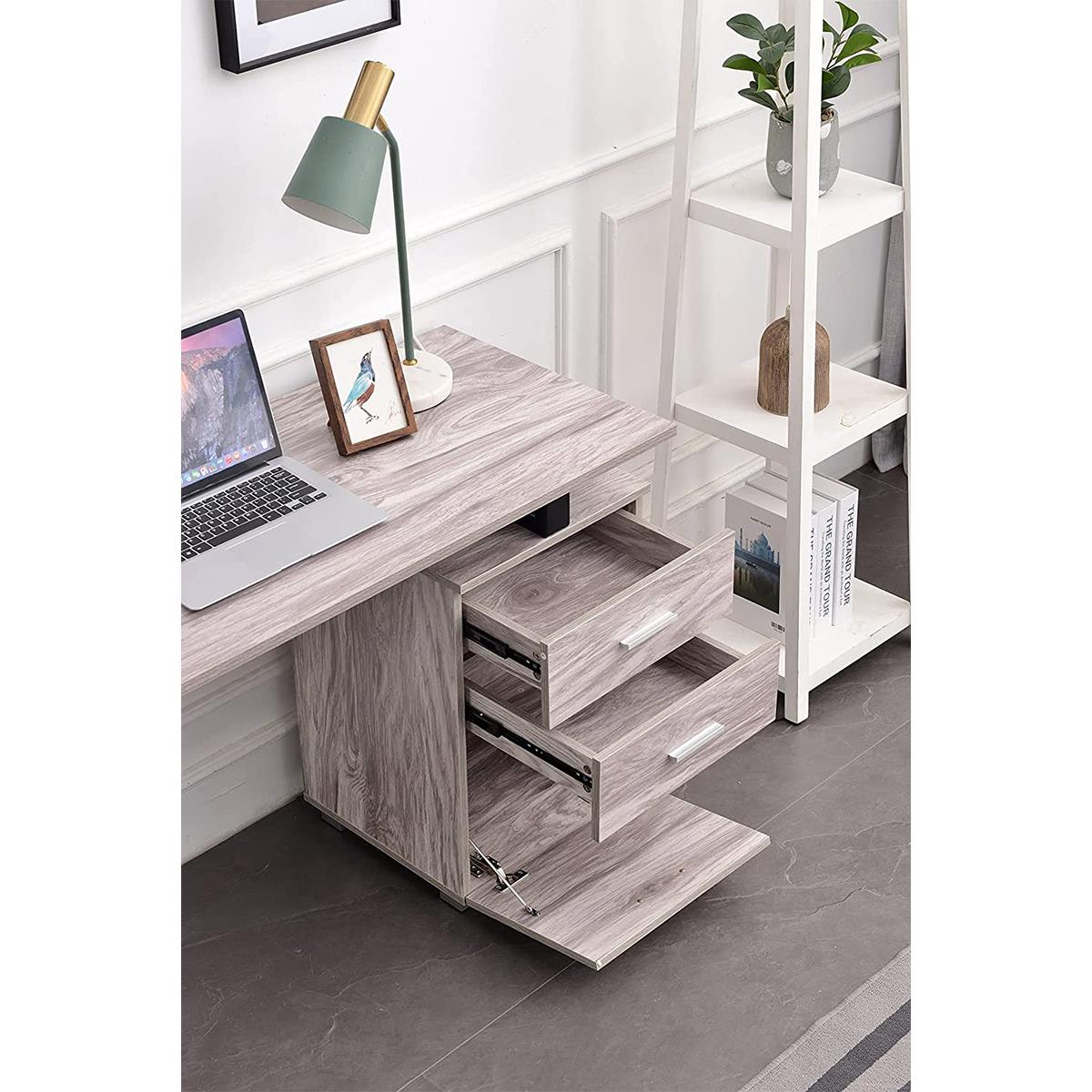 Computerbord PERTH, Mål 120x50x75 cm, Med Skuffer, I Metal og Grå Træ