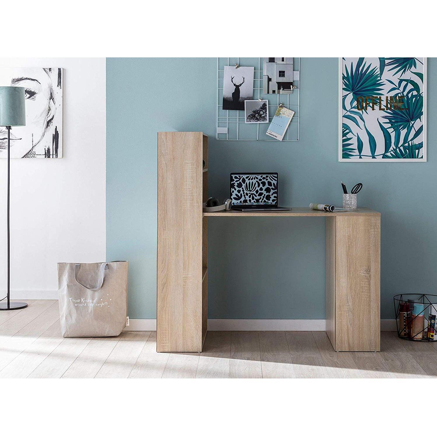 Computerbord YASMIN, 120x53x120 cm, Med Hylder, I Træ, Egetræ Farve