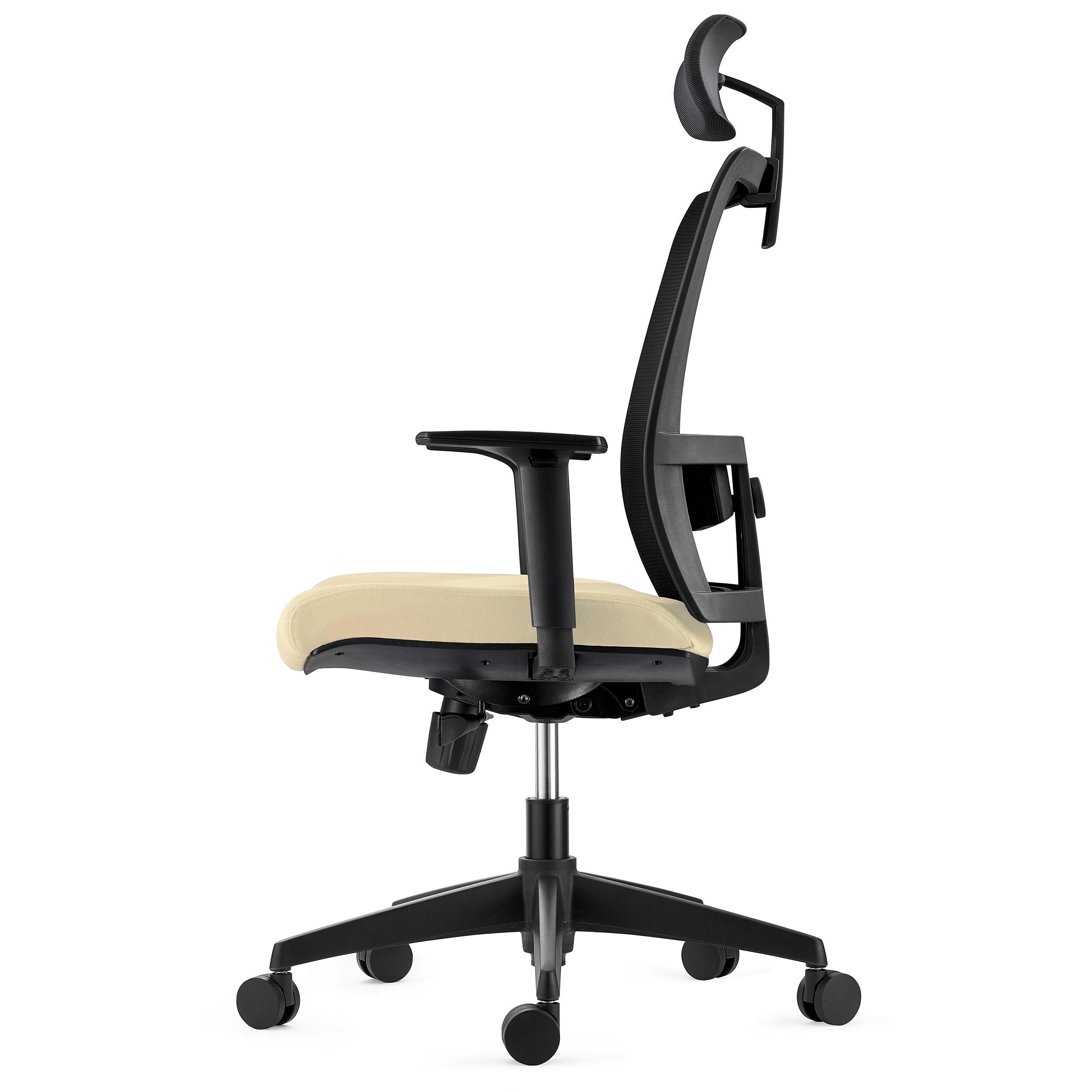 Ergonomisk stol AXEL, Med Nakkestøtte, Lændestøtte, I Stof og Net, Cremefarvet Farve