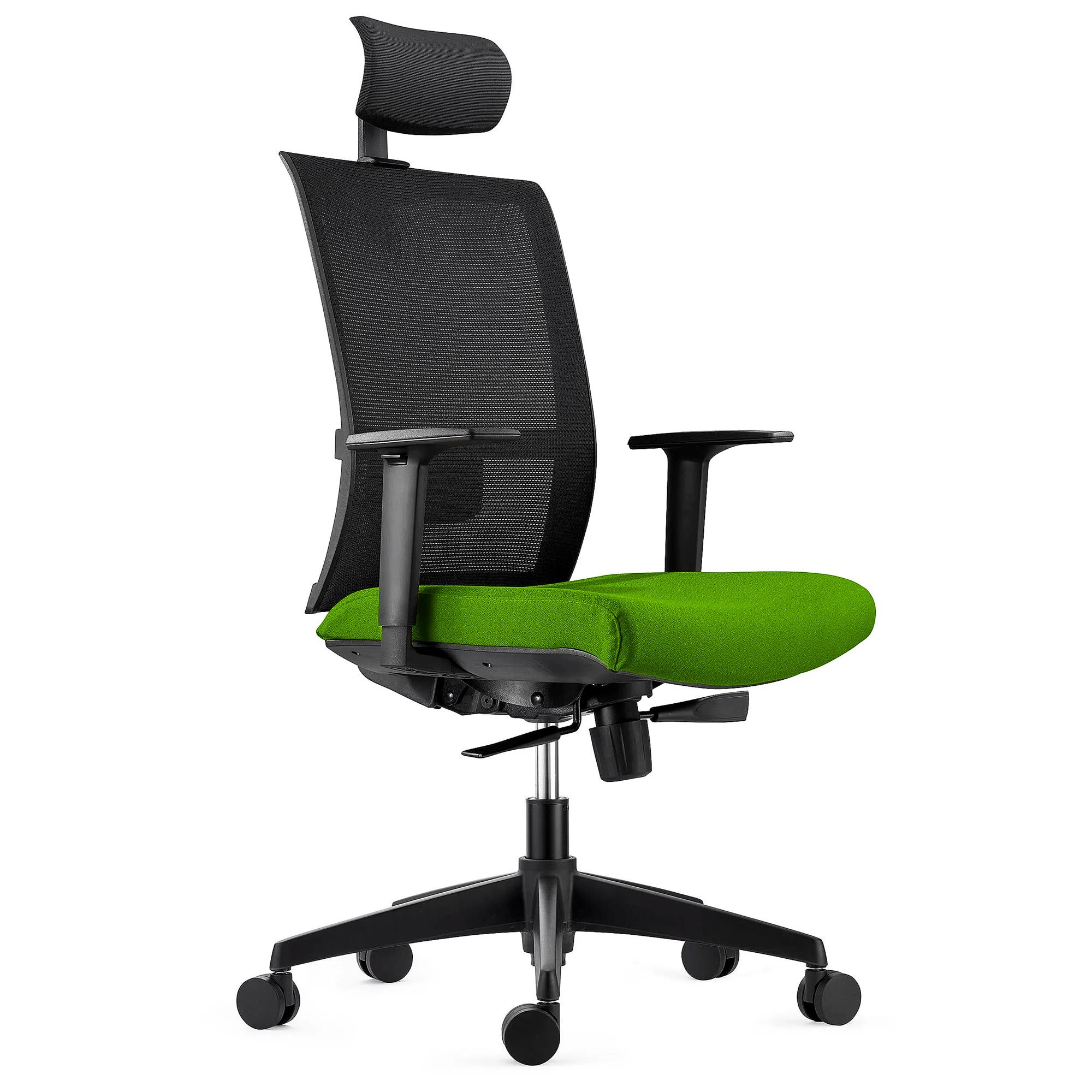 Ergonomisk stol AXEL, Med Nakkestøtte, Lændestøtte, I Stof og Net, Grøn Farve