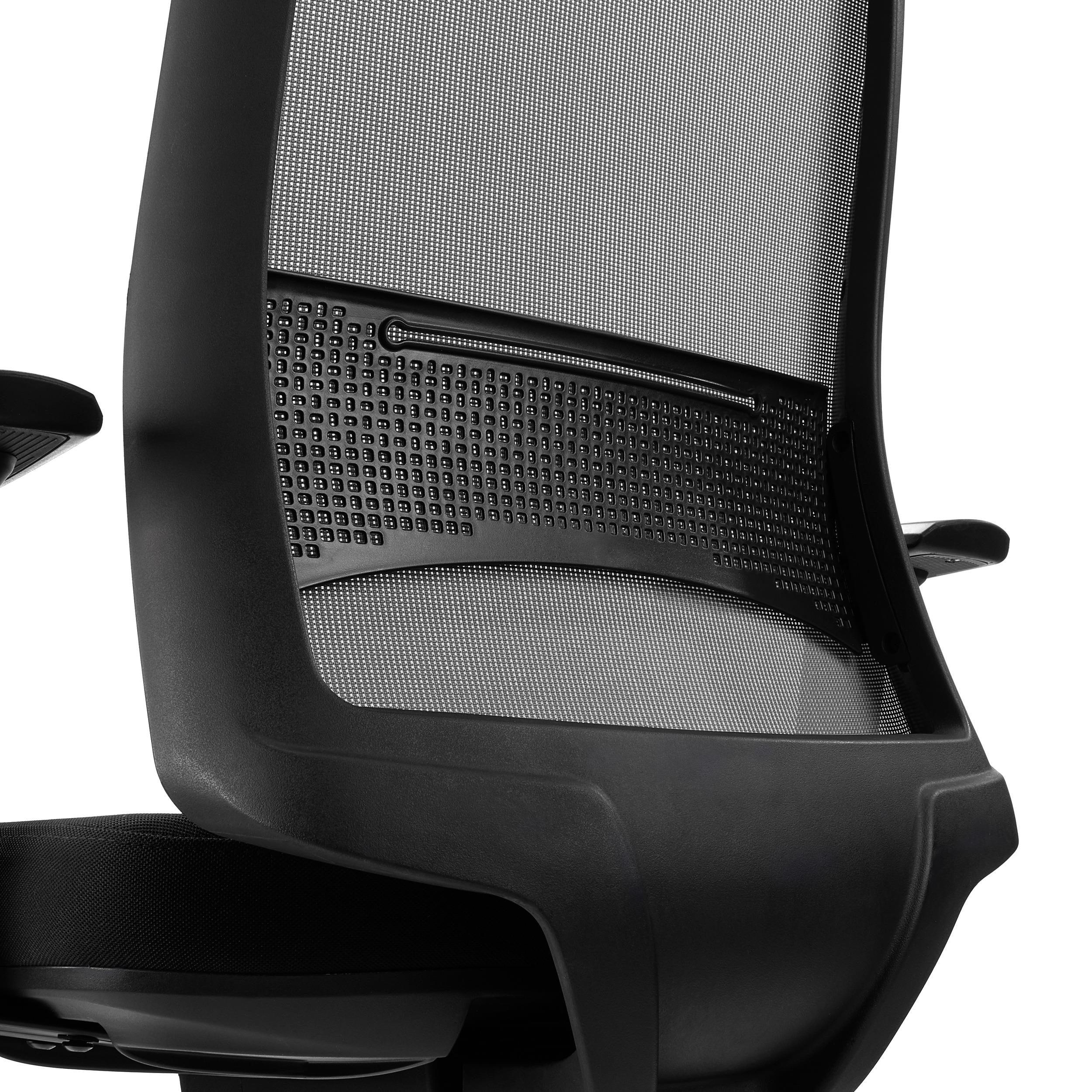 Ryglænet i 100% åndbart net, med ergonomiske former og lændestøtte, gør denne stol til en særlig komfortabel model. Denne del er specielt designet til at give ryggen optimal støtte og fremhæver den højdejusterbare lændestøtte.