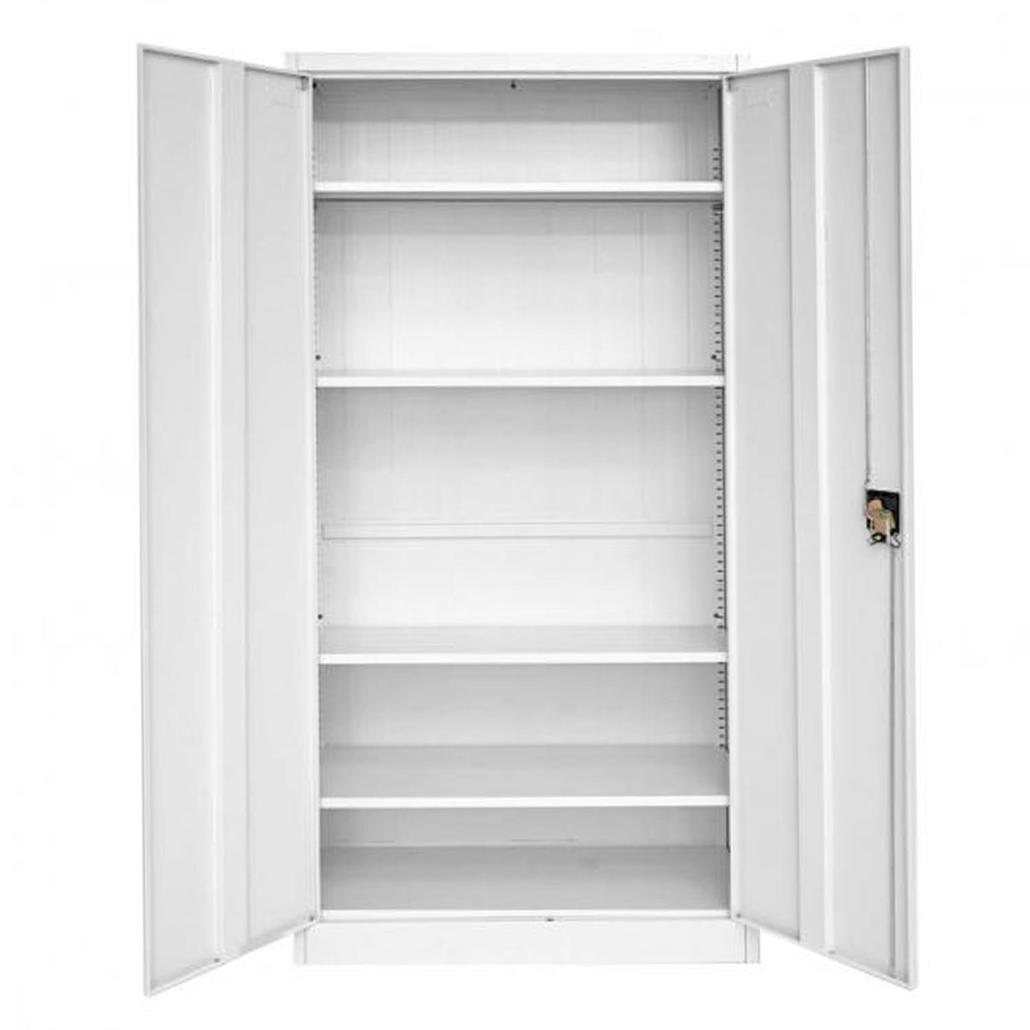 Denne opbevaringsløsning på 185x90x40 cm har 5 store adskilte rum, der giver dig mulighed for at opbevare dokumenter, materialer eller andre genstande på en ordnet måde. Den har to låsbare døre for bedre sikkerhed. Den er ideel til dit kontor eller hjem, da dens store opbevaringskapacitet gør det muligt at organisere det rum, hvor den skal placeres, hurtigt og effektivt.