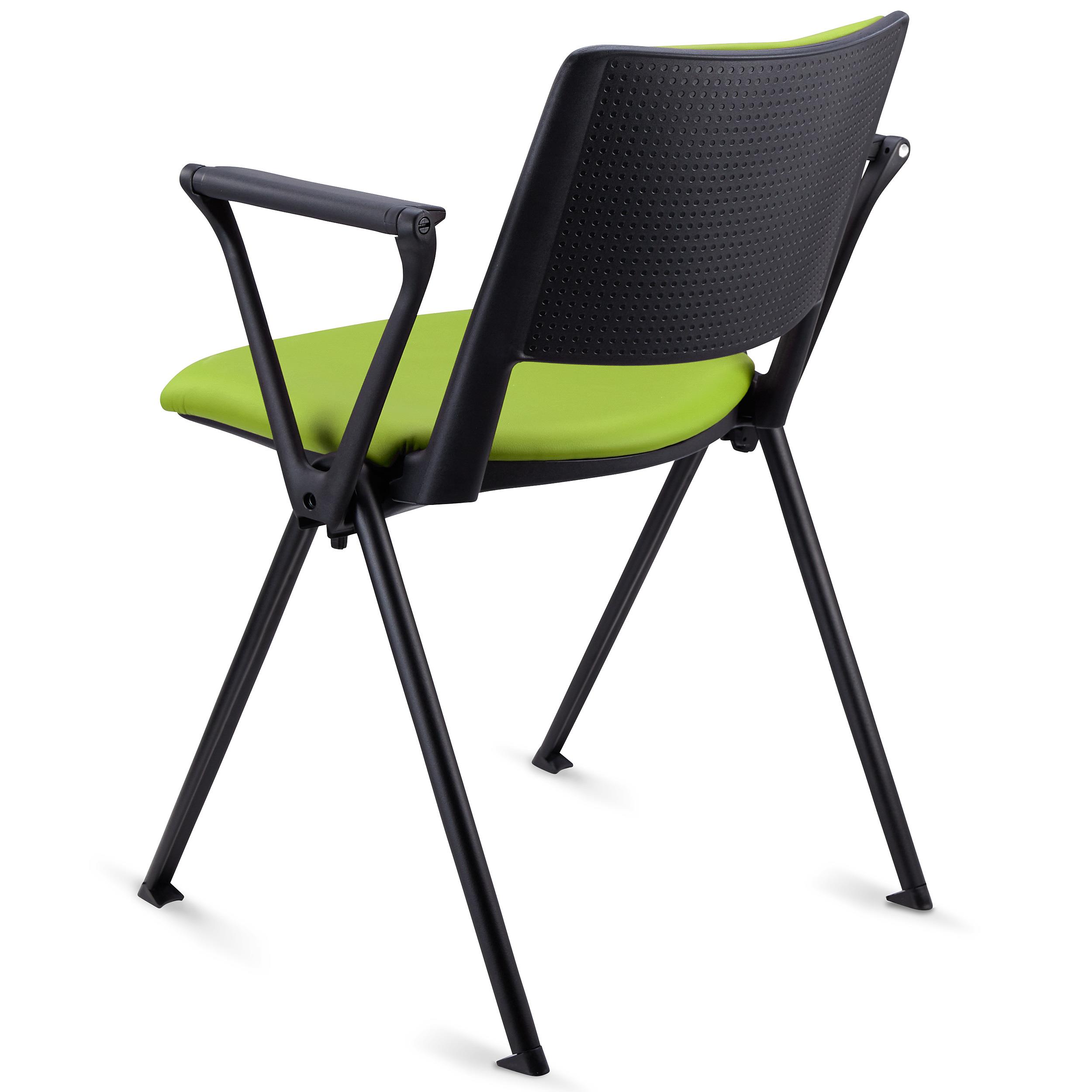 Konferencestol CARINA MED BORD, Stabelbar, Tilslutningskroge, Sorte Ben og Grønt Læder