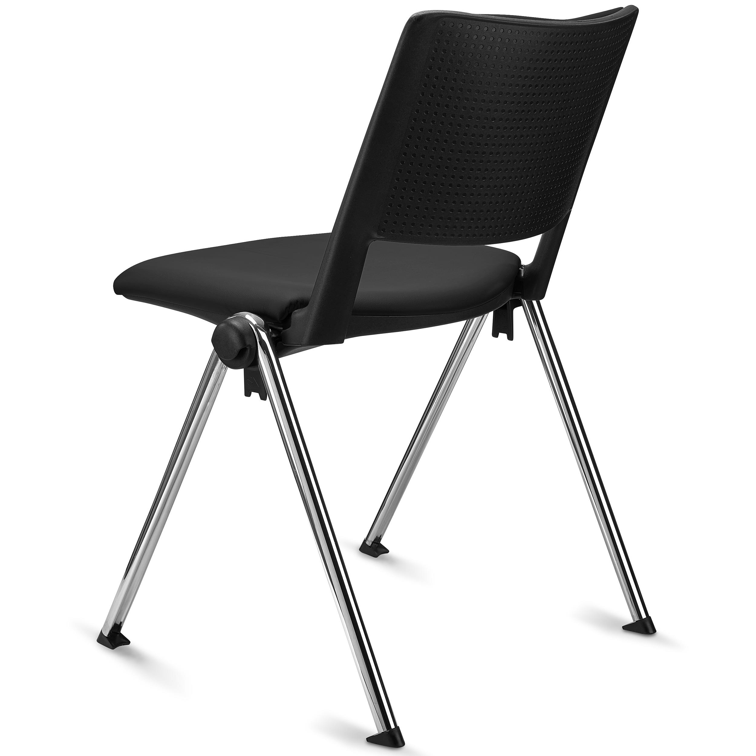 Konferencestol CARINA, Stabelbar, Tilslutningskroge, Krombelagte Ben og Sort Læder