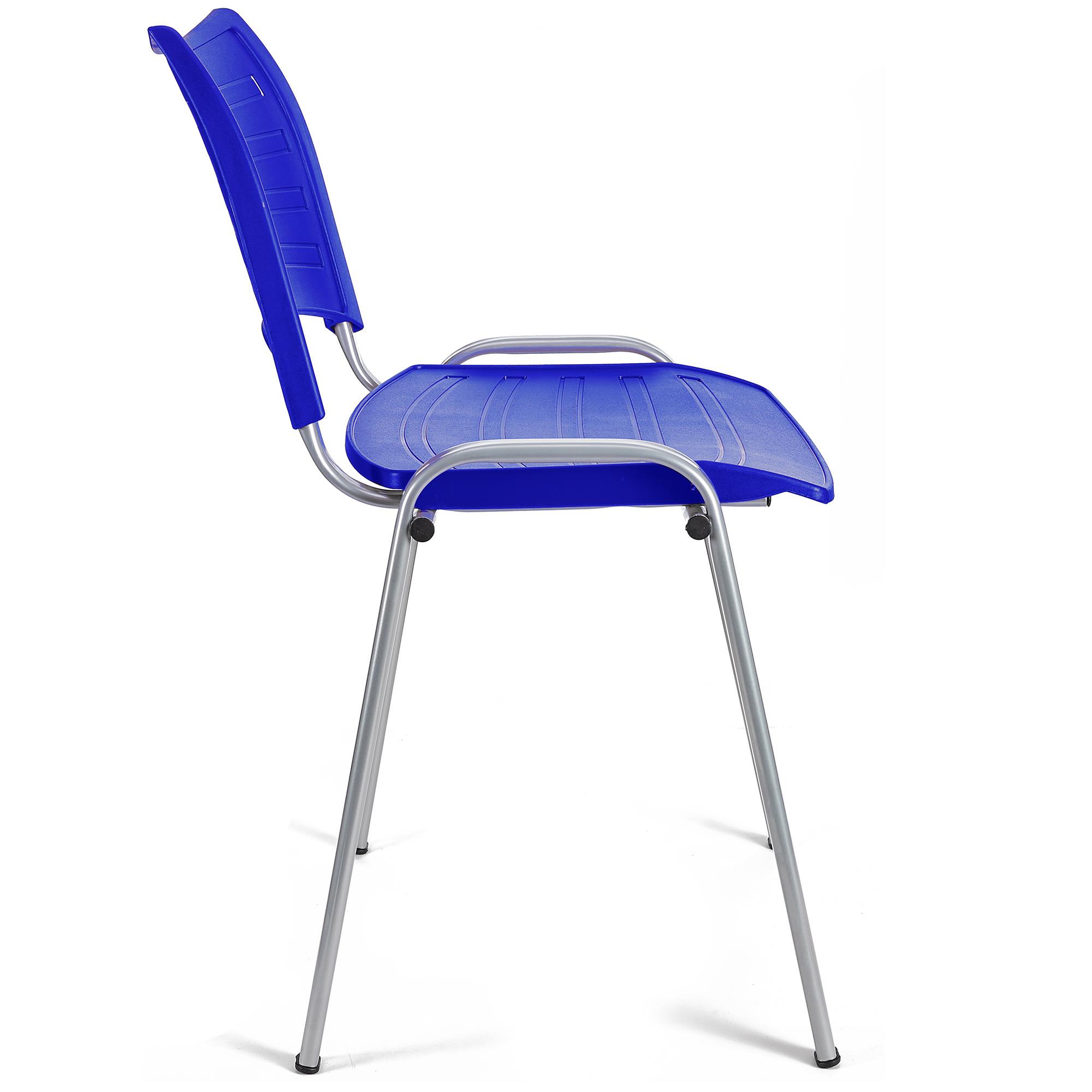 Konferencestol ELVA, Stabelbar og Meget Praktisk, Høj Kvalitet, Blå Farve og Grå Ben