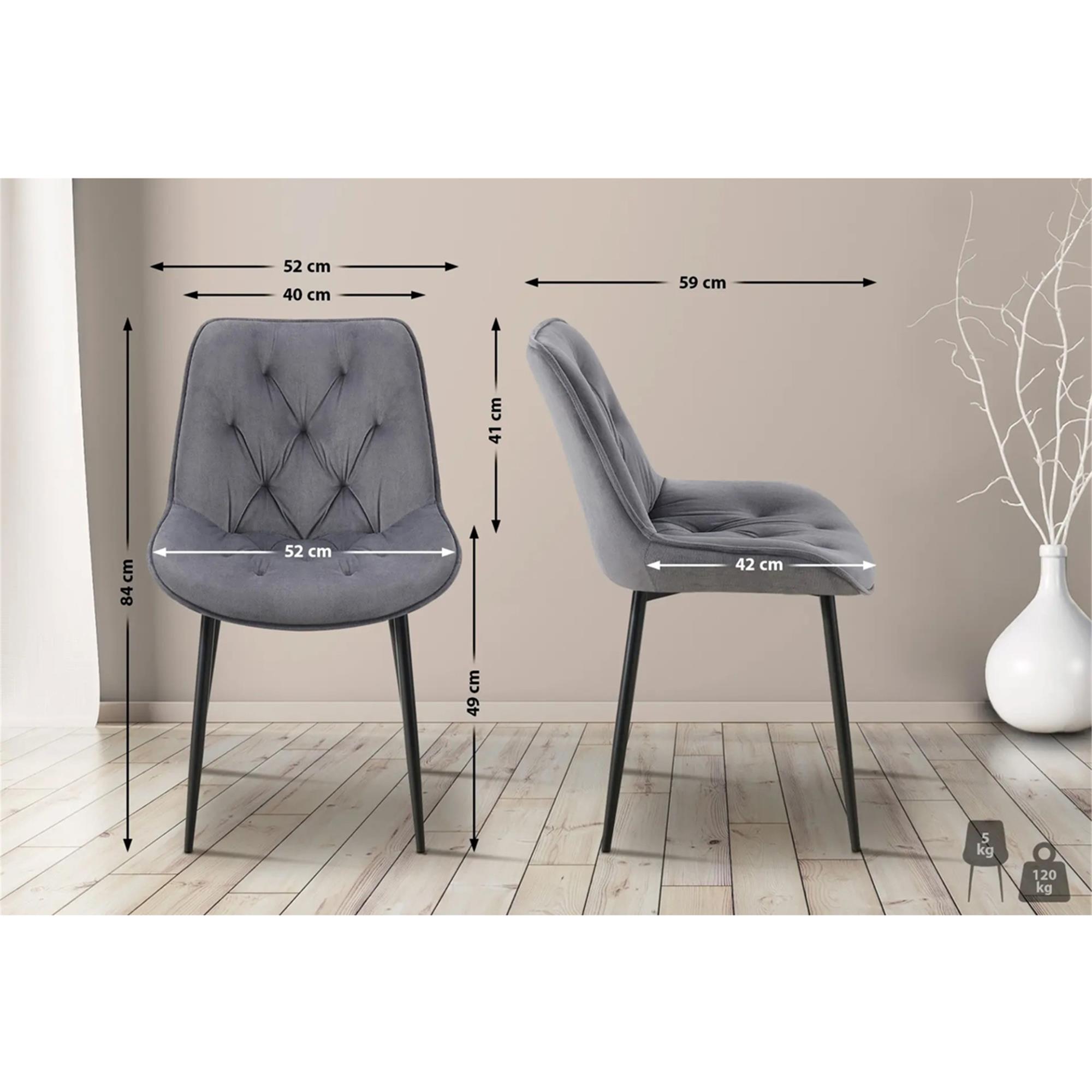 Denne elegante stol er en perfekt kombination af komfort, funktionalitet og modernitet. Den har 4 støttepunkter af metal, så det er en meget modstandsdygtig stol, der kan bære op til 120 kg. Den har gulvbeskyttere på benene for at undgå at beskadige gulvet på sarte overflader.