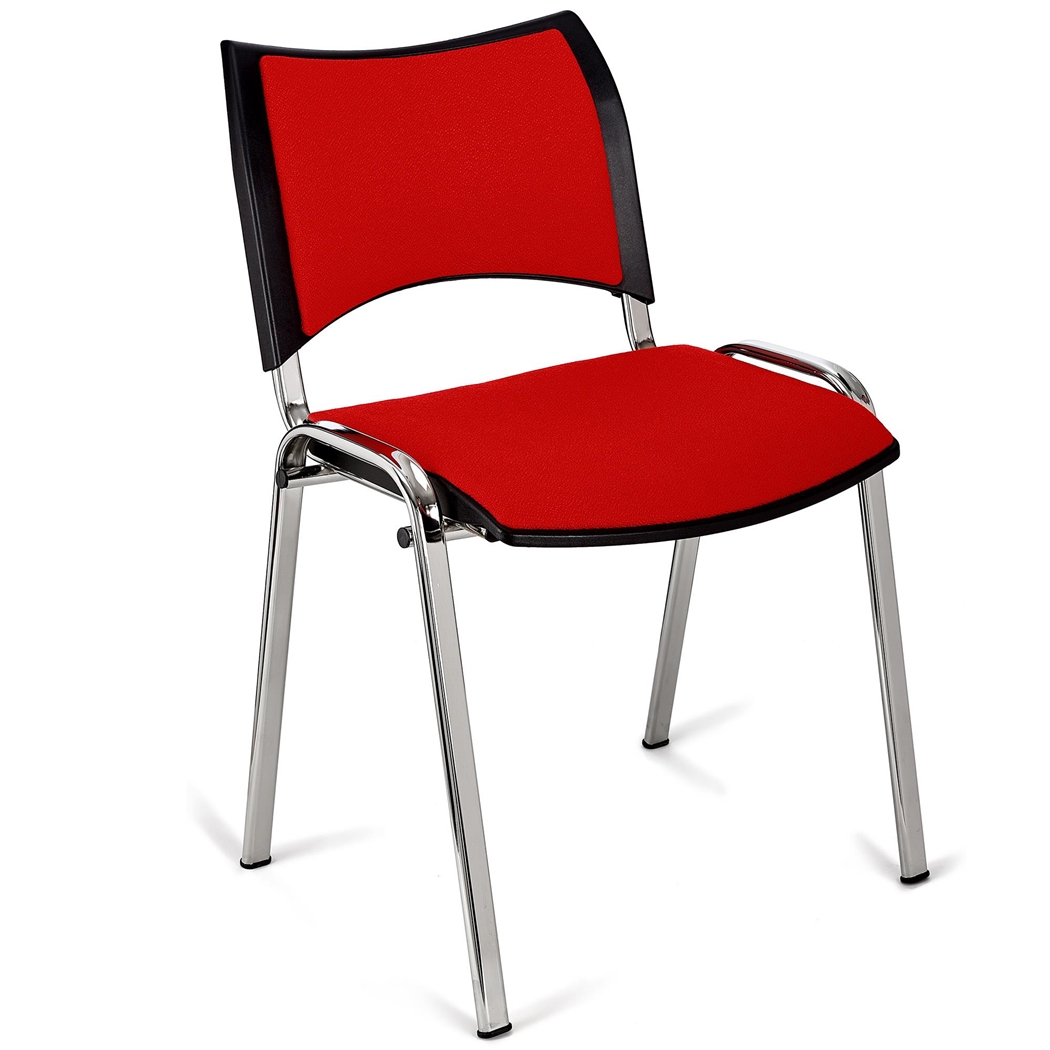 Konferencestol ROMEL, Behagelig Polstring, Stabelbar, Krombelagte Ben, I Rød Stof