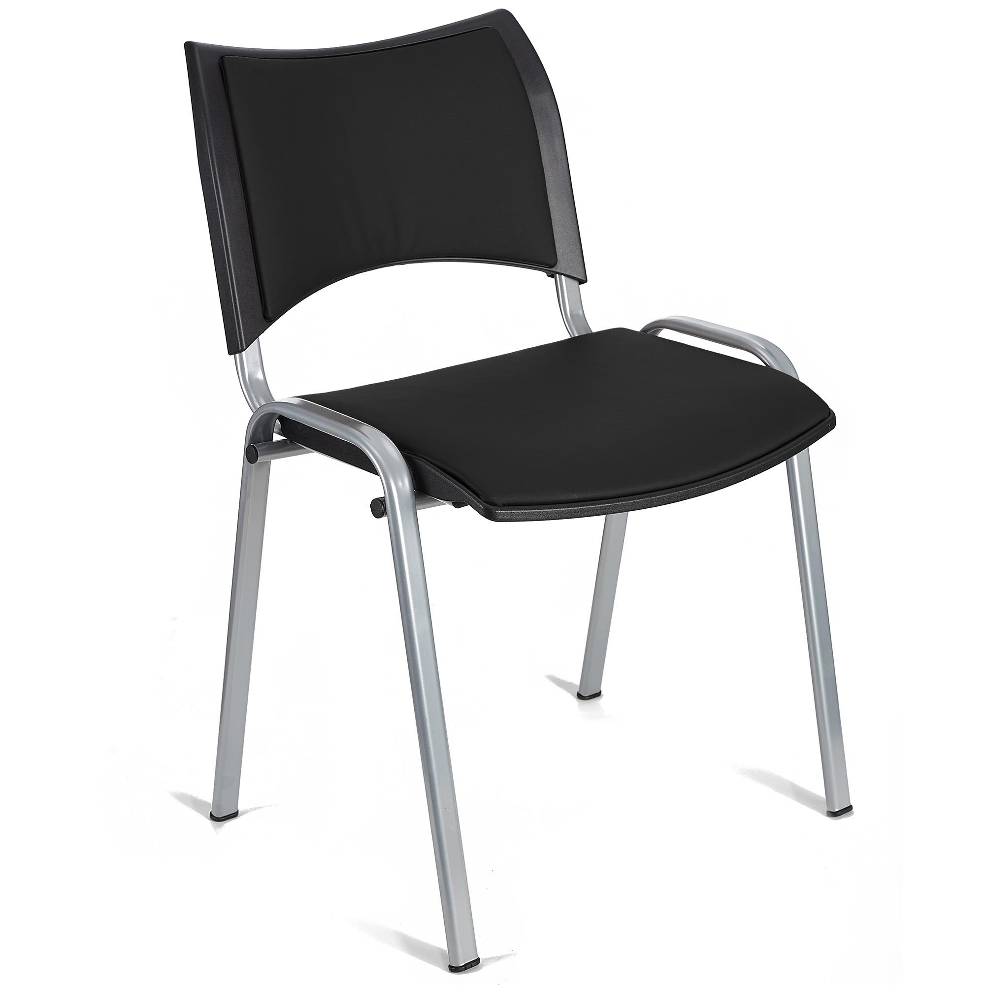 Konferencestol ROMEL LÆDER, Behageligt Polstret, Stabelbar, Grå Ben, I Sort