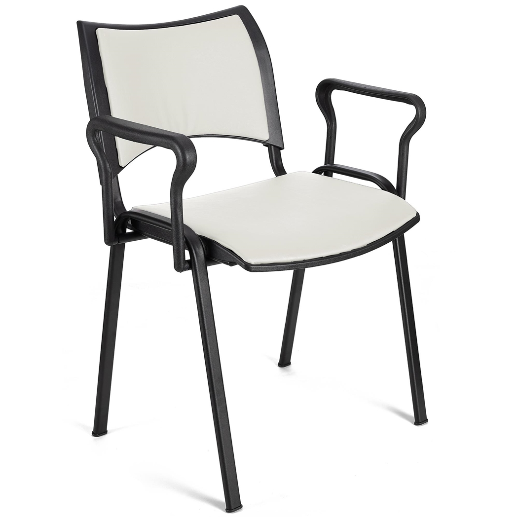 Konferencestol ROMEL MED ARMLÆN LÆDER, Behageligt Polstret, Stabelbar, Sorte Ben, I Hvid