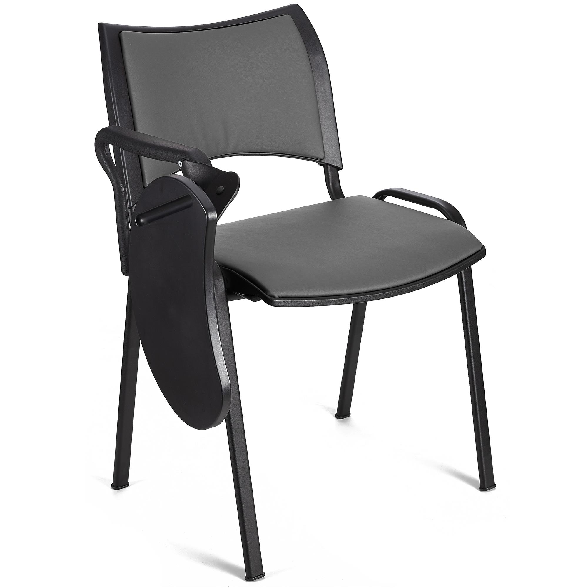 Konferencestol ROMEL MED BORD LÆDER, Behageligt Polstret, Stabelbar, Sorte Ben, I Grå