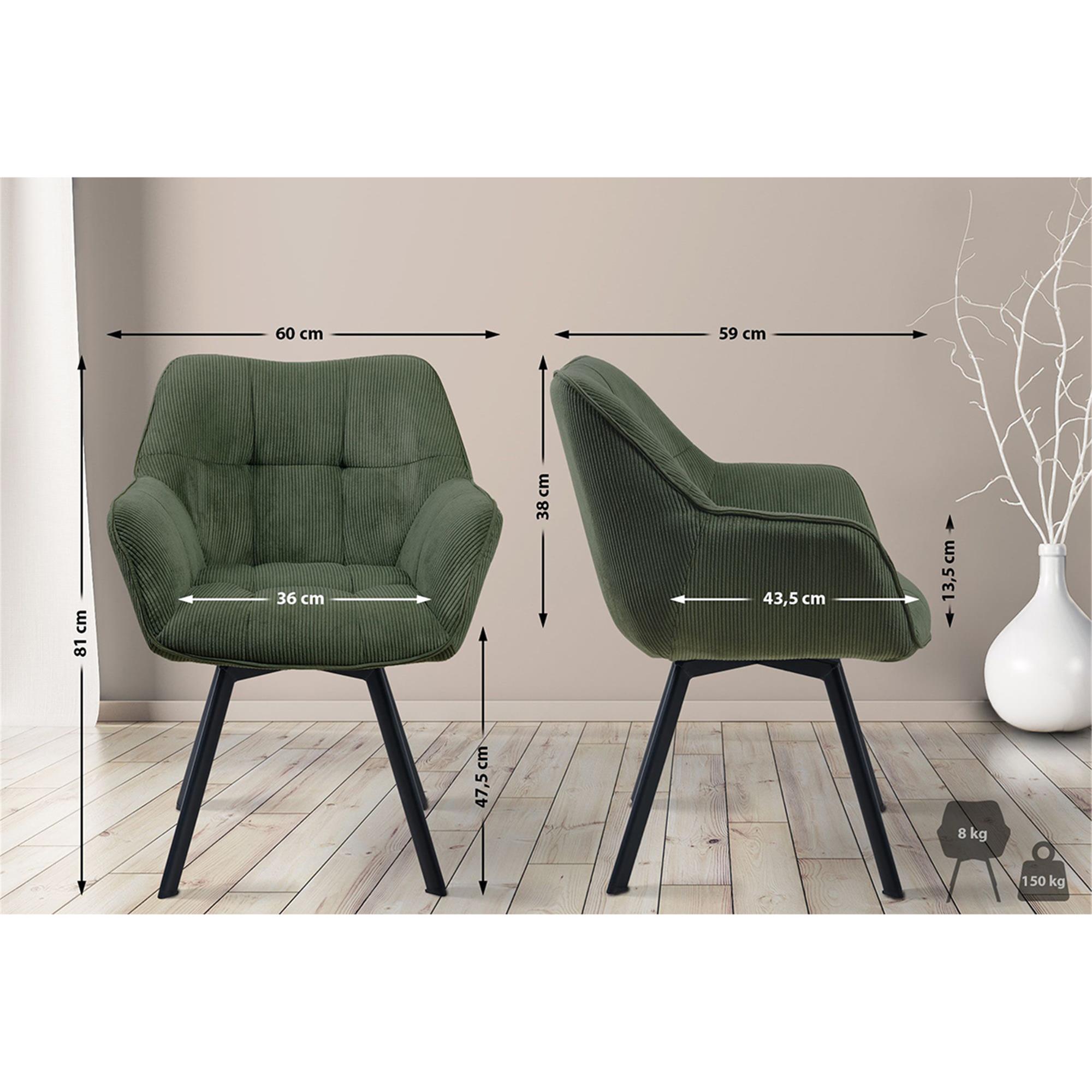 Konferencestol TAMMY, Drejelig, Metalben, I Grøn Fløjlsstof