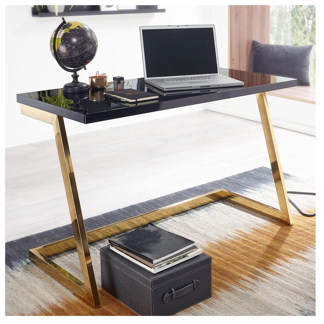 Kontorbord OSAKA, 120x55x76 cm, Guldstruktur, Sort Træplade