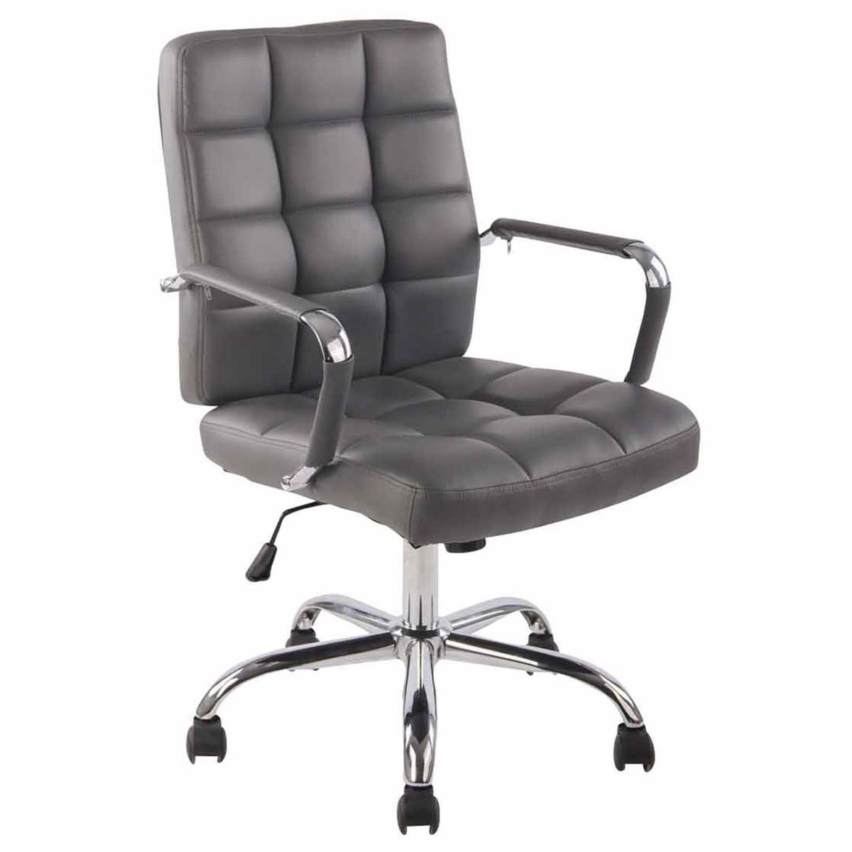 Kontorstol DELAN, Tyk Polstring, Metalfod, Betrukket med Grå Læder