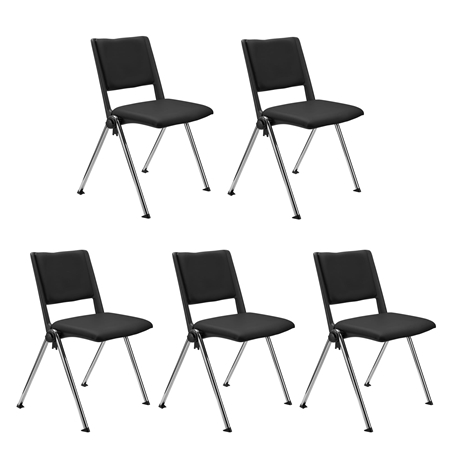 Sæt Med 5 Konferencestole CARINA, Stabelbare, Tilkoblingskroge, Krombelagte Ben, I Sort Læder