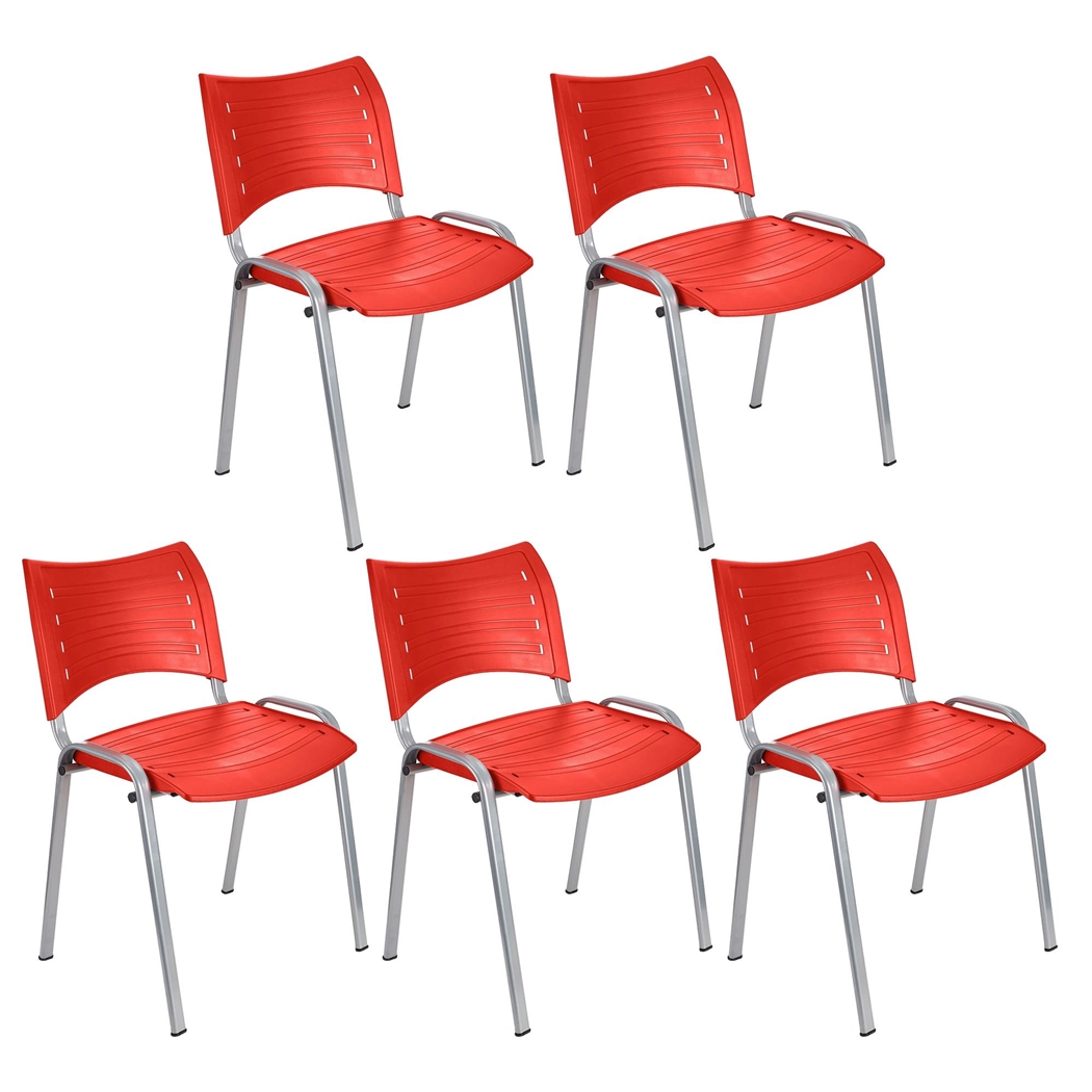 Sæt med 5 Konferencestole ELVA, Stabelbare og Meget Praktiske, Høj Kvalitet, i Rød og Grå Ben