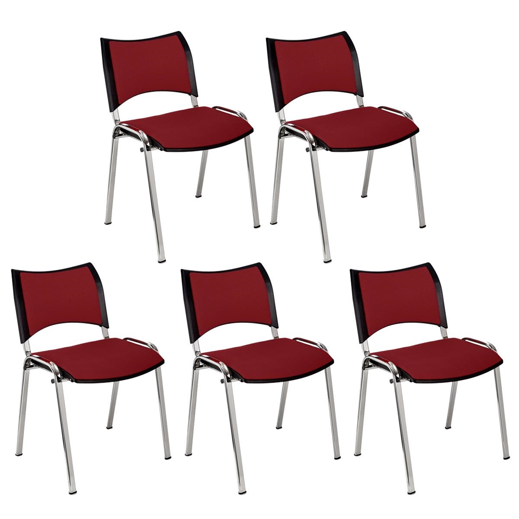 Sæt Med 5 Konferencestole ROMEL, Behageligt Polstret, Stabelbare, Krombelagte Ben, I Bordeuax Stof