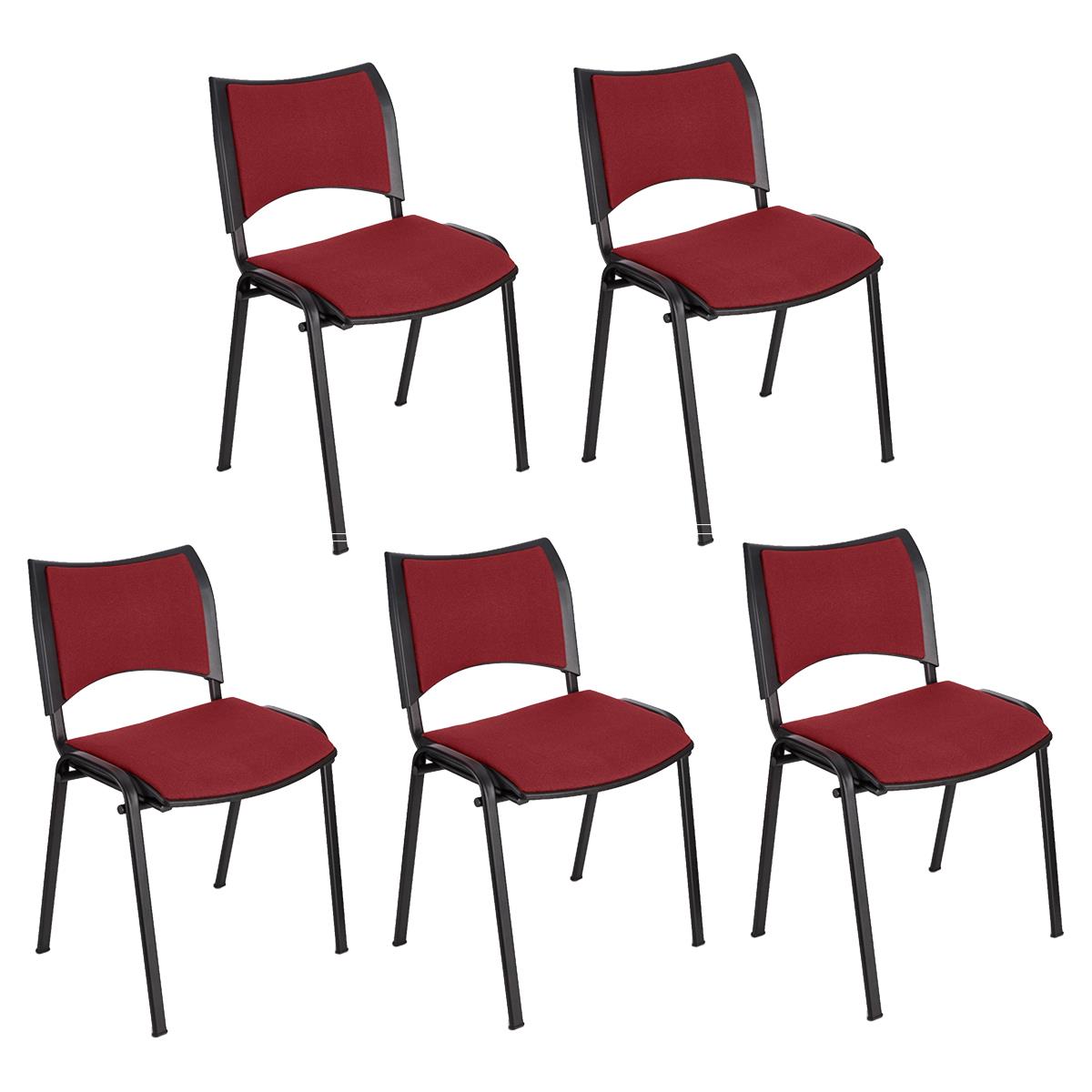 Sæt Med 5 Konferencestole ROMEL, Behageligt Polstret, Stabelbare, Sorte Ben, I Bordeaux Stof