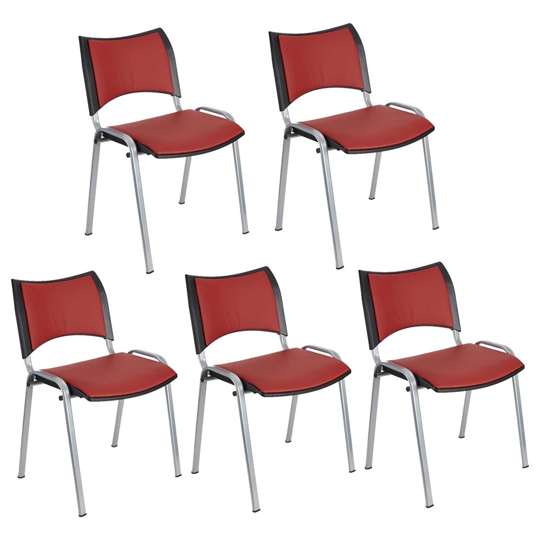 Sæt Med 5 Konferencestole ROMEL LÆDER, Behageligt Polstret, Stabelbare, Grå Ben, I Rød