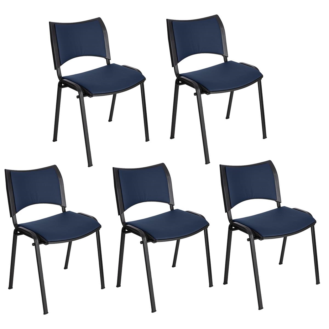 Sæt Med 5 Konferencestole ROMEL LÆDER, Behageligt Polstret, Stabelbare, Sorte Ben, I Blå