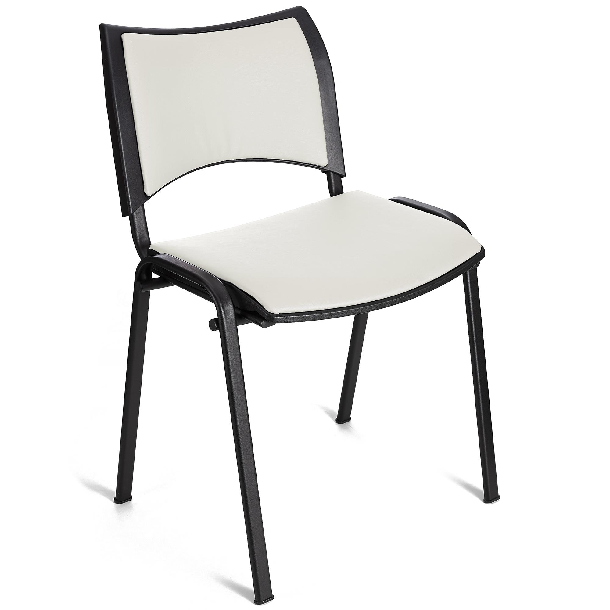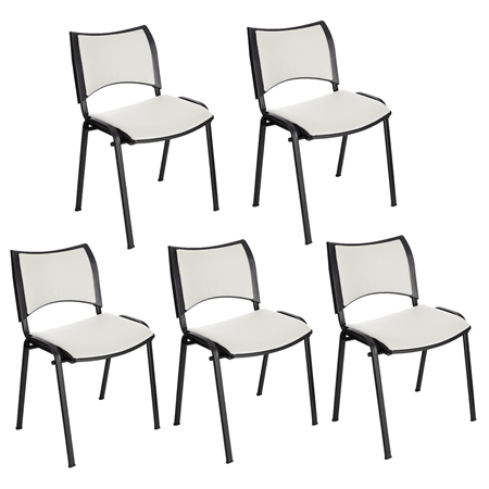 Sæt Med 5 Konferencestole ROMEL LÆDER, Behageligt Polstret, Stabelbare, Sorte Ben, I Hvid